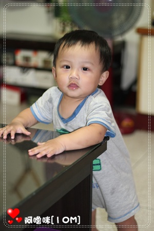 一路看著阿嚕咪從坐到爬到扶著東西站.相信在不久他即將脫離爬行類